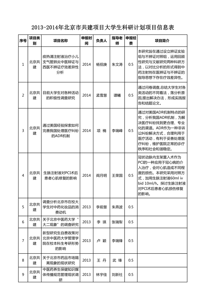 2013-2014年北京市共建项目大学生科研计划项目信息表(开云kaiyun官方网站)
