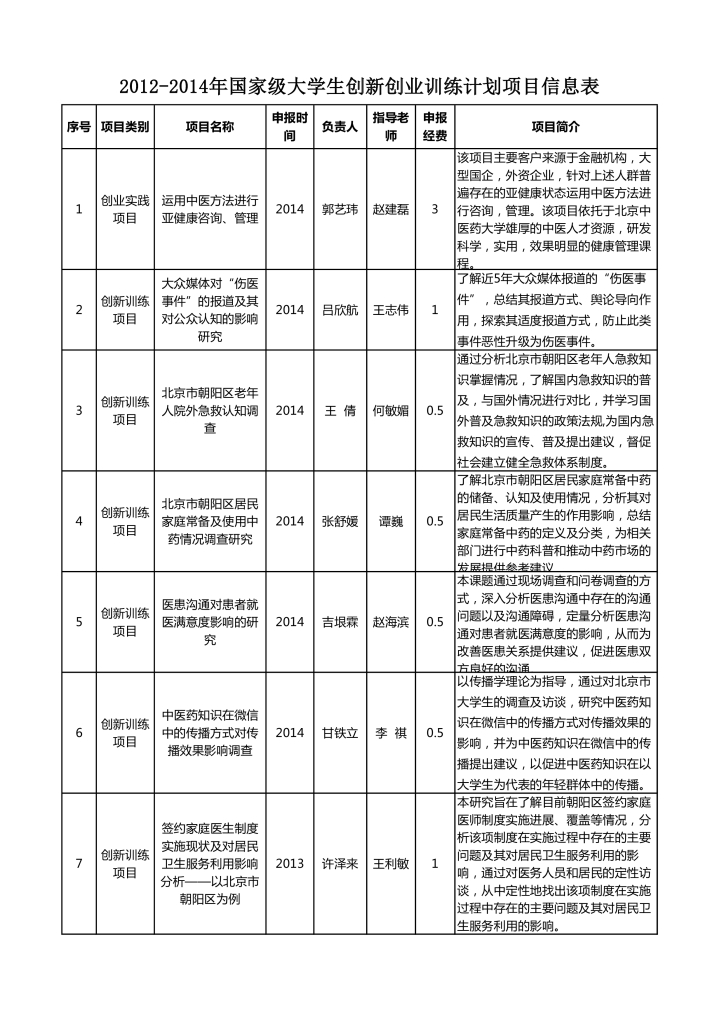 2012-2014年国家级大学生创新创业训练计划项目信息表(开云kaiyun官方网站)