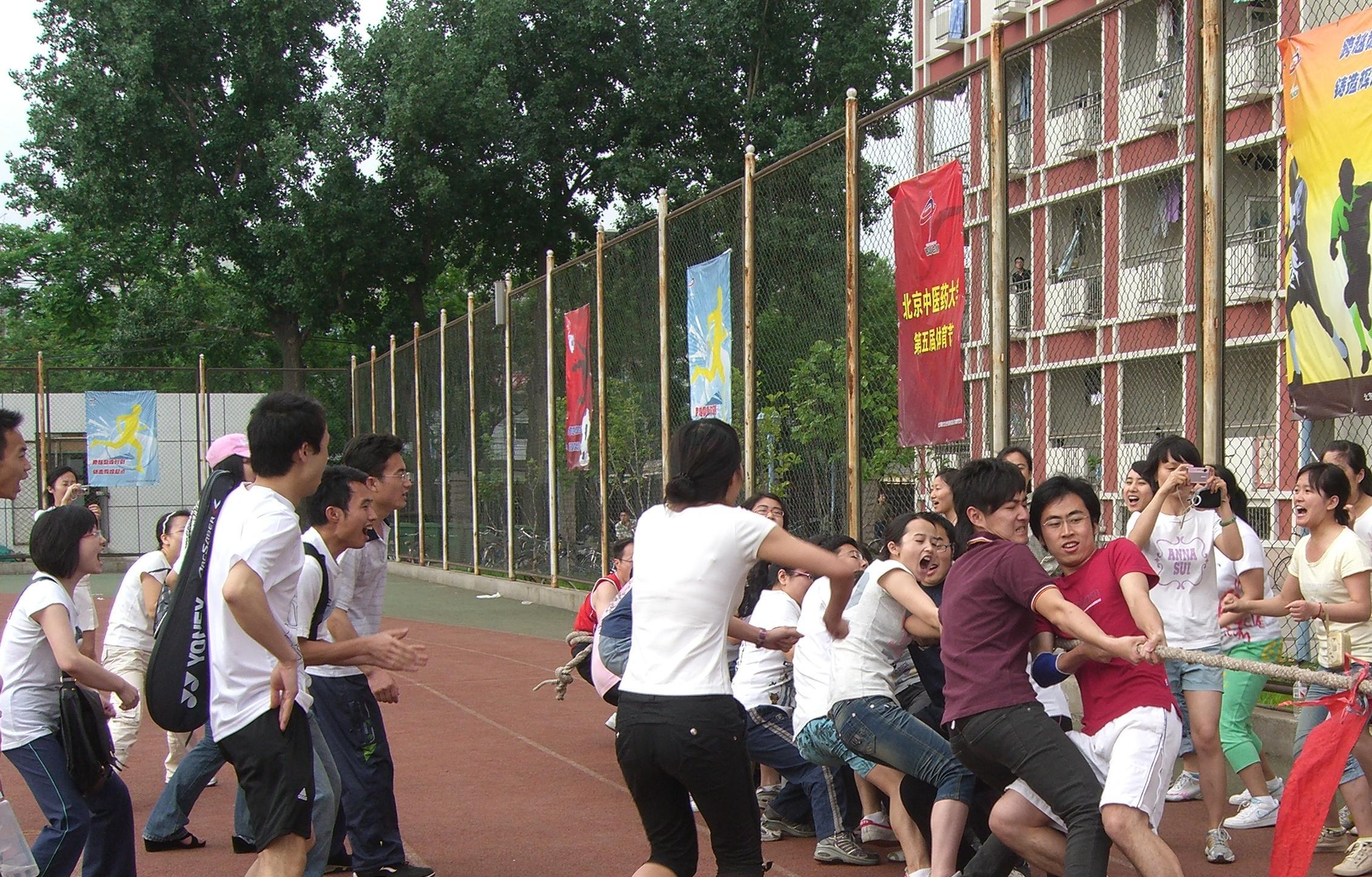 最后的拔河把本次比赛推入了最高潮,赛前各班学生踊跃参加,队员个个精神饱满、精力充沛、斗志昂扬,领队给队员详细讲解技巧要点,裁判认真布置赛场,其他同学则忙着给自己班队员鼓劲。随着裁判的一声令下,双方队员一触即发,齐心协力、步调一致地使劲往后拉,中央红绳在交界处不停颤抖,道路两旁的呐喊声,助威声此起彼伏,气氛越来越热烈,“一、二、加油!”“一、二、加油!”响彻在操场的上空……