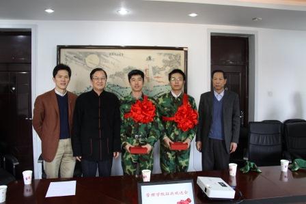 陈占禄书记说立志参军是一种至高无尚的责任,参军是全学校的光荣。考虑到个人的发展同时也要考虑到学校的发展,将所学的知识尽量运用到军队中去。做好吃苦耐劳的准备,尽快适应军队生活,抓住机遇,祝愿大家凯旋。