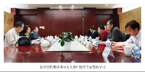 2日,考察团队首先前往中国人民大学苏州校区国际学院学习。出席座谈会的有人大苏州校区国际学院副院长石佳友、院长助理兼教学二部主任黄一顺、院长助理兼学生事务部主任刘甡、办公室执行主任肖逸秋、国际事务部副主任陈超、国际事务部白鹭,会议由刘甡主任主持。石佳友副院长首先对人大苏州校区国际学院做了详细的介绍,指出该院始终以国际化办学为宗旨,引进优质教学资源为核心,与国外大学强项专业合作,建立与本部专业有所区别的、融入长三角地区的国际化办学模式。之后,王志伟副院长和侯胜田教授分别介绍了我院的发展历程和专业设置情况。双方就培养方案、课程安排、师资配备、合作办学协议制定、办学成本等方面做了深入细致的探讨。