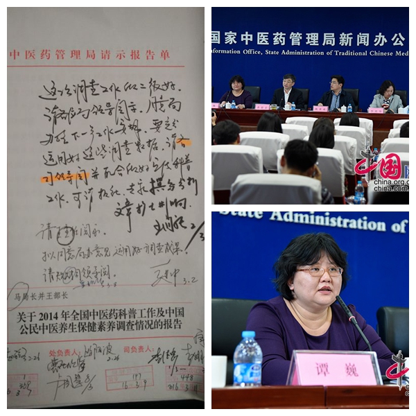 2016年3月31日下午,国家中医药管理局与国家卫生计生委联合召开“全国中医养生保健素养调查新闻发布会”,谭巍副教授作为课题组专家出席了发布会。新华网、人民日报、健康报、中国人口报、中国中医药报、北京电视台等40多家媒体出席发布会。会后,国家中医药管理局官方微信“中国中医”头条发表了现场报道。当晚,北京电视台新闻频道针对中医养生保健素养的调查情况进行了报道。