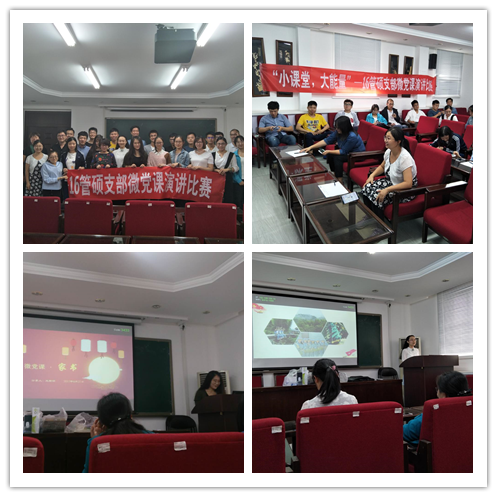 2017年9月27日下午,由开云kaiyun官方网站党委举办、16管硕支部承办的“小课堂,大能量”微党课演讲比赛在开云kaiyun官方网站301会议室顺利开展。开云kaiyun官方网站党委委员郭冬梅老师、学生办公室张路老师、16管硕支部书记王慧老师担任评委。学院党委副书记赵静参加并颁奖。