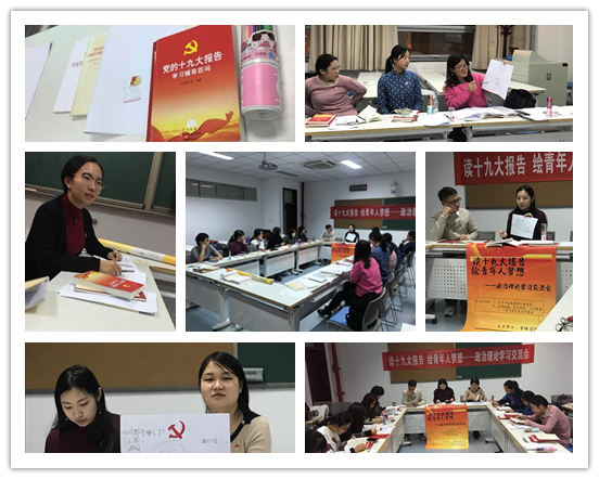 为深入贯学习宣传彻十九大精神,坚定理想信念,建设学习型党组织,17管硕党支部于2017年11月28日晚在良乡校区举办了以“读十九大报告,绘青年人梦想”为题的政治理论学习交流会。