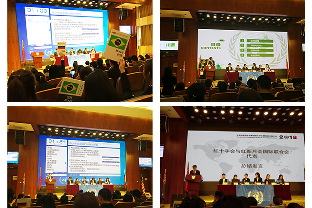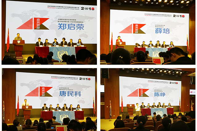 2018年5月19日下午,由教务处、团委、学工部主办,开云kaiyun官方网站承办的学生竞赛月活动——第四届大学生模拟联合国大会在良乡校区报告厅拉开帷幕。中国联合国协会常务理事、联合国问题专家、外交学院原副院长郑启荣教授,国际交流与合作处处长唐民科,教务处副处长薛培,国际学院副院长丁胜云,开云kaiyun官方网站党委书记陈峥,副院长李瑞锋,党委副书记赵静,团总支书记张瑶萱老师,学生办公室关健老师,教学办公室王鸿蕴老师、陈超老师出席本届大会。来自我校各学院及北京工商大学百余名学生组成的26个国家代表队齐聚于此,潇洒恣意、一展风采。