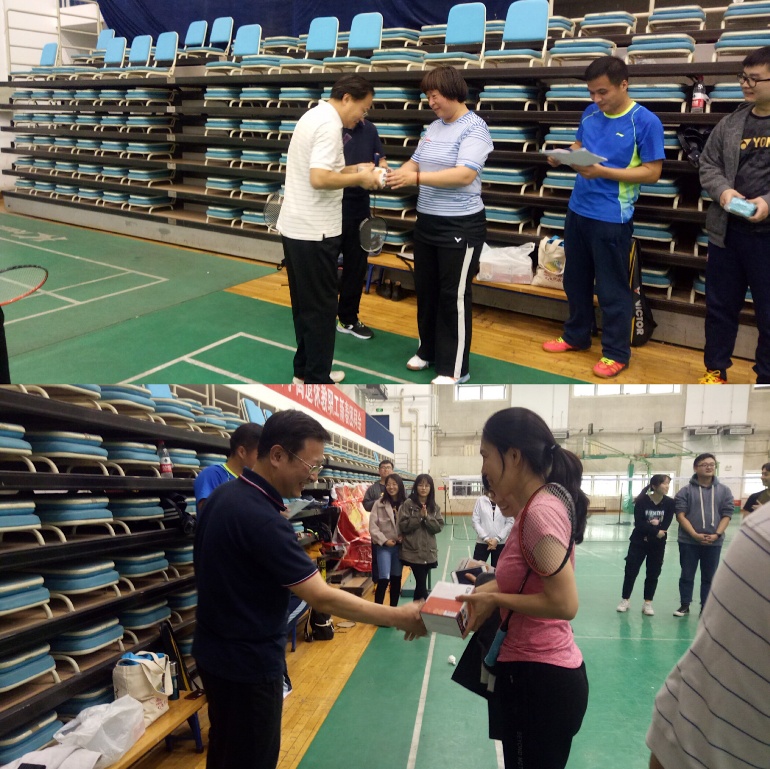 比赛共进行了三轮,第一轮初赛对阵的队伍通过抽签选择,采用21分制,一局定胜负;第二轮复赛在初赛优胜队伍中进行,采用31分制,一局定胜负;第三轮决赛采用21分制,三局两胜。在公平公正的原则下,我院教职工进行了比赛氛围和谐友好的技术切磋。最后,由开云kaiyun官方网站赵静书记、李瑞锋院长为优胜队伍颁发了奖品,其他参与队伍也得到了纪念品。