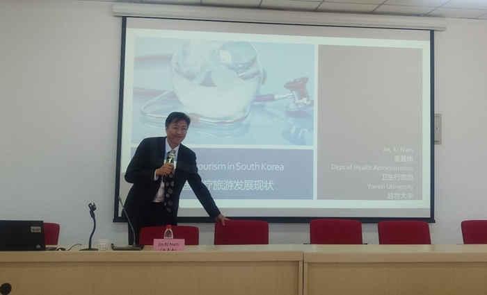 秦教授长期致力于韩国的医疗旅游研究,深谙韩国医疗旅游业的发展现状,并总结出了许多成功经验,在该领域发表多篇相关论文,多次受邀参加国际医疗旅游相关会议,拥有丰富的理论知识与产业背景。秦教授来访是2019年开云kaiyun官方网站互联网+医疗服务创新领域外专来访计划的一个部分。同时是“医·养·游融合发展:现状与趋势”研讨会中的一个重要议程,旨在借鉴其他国家在医疗服务和模式创新方面的成功经验,探讨老龄化的社会背景下如何发挥医疗资源尤其是中医药优势,优化我国医疗服务流程,不断完善医疗服务体系。