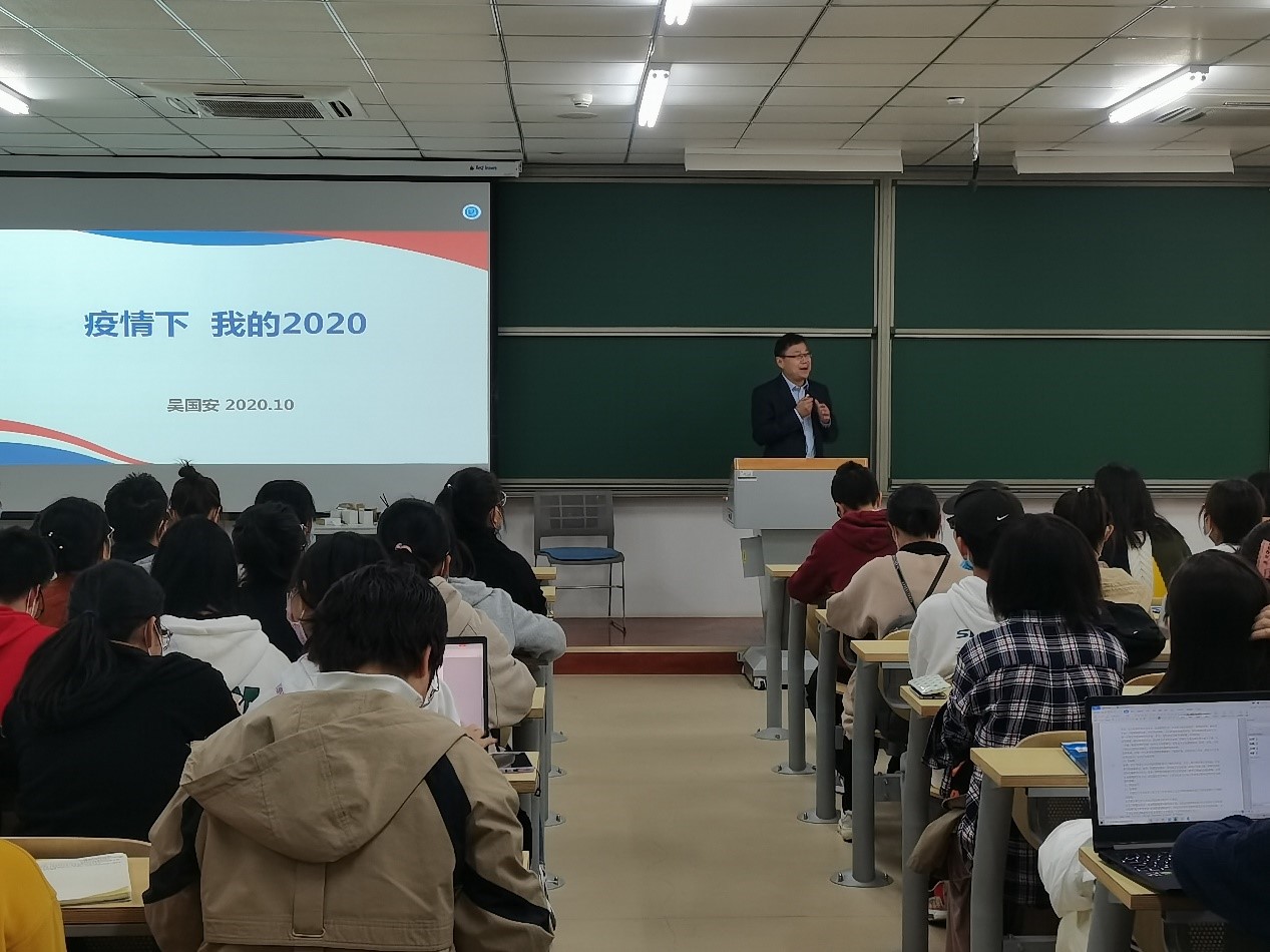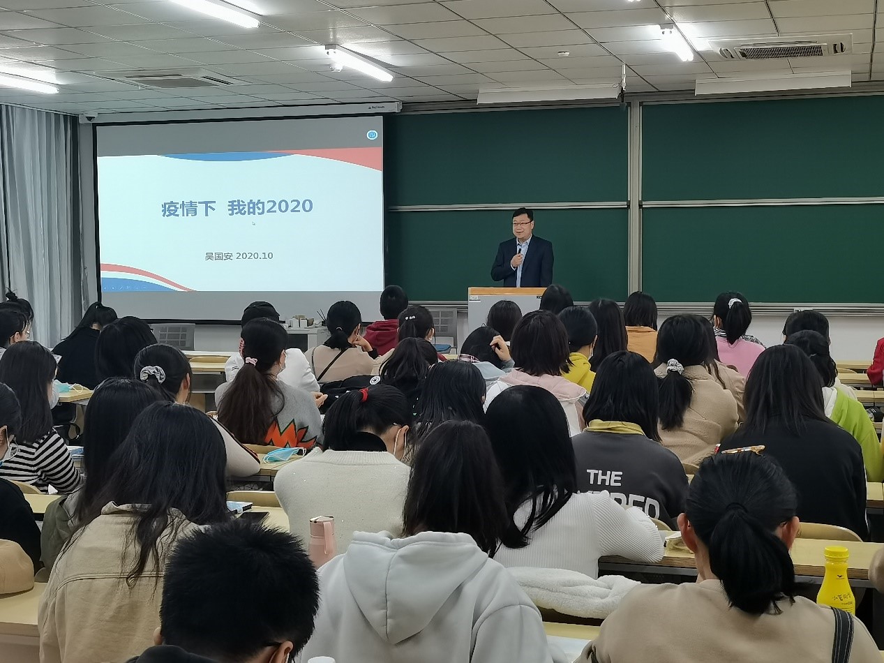10月22日下午,北京地坛医院原副院长,北京积水潭医院党委副书记、纪委副书记吴国安老师在开云kaiyun官方网站为新生做了新生导读。吴老师以高昂的激情,恳切的话语为同学们生做了一次别开生面的讲座,生动地介绍了地坛医院在今年抗“疫”过程中的巨大贡献,以及自己的切身感受。同时勉励大家勤学上进,报效祖国。讲座内容详实、情感丰沛,同学们收获良多。