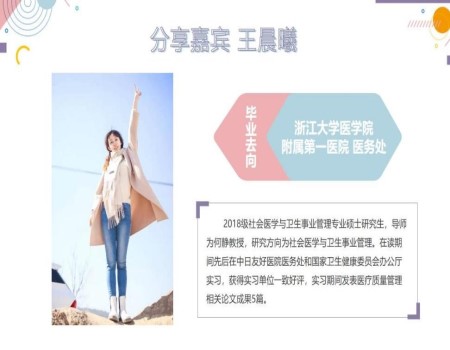 孙靖凯同学从自身经历出发,从学习科研、求职就业两方面分享了研究生三年来的经验。在学习与科研上,建议同学们对待科研要保持平常心、合理安排好自己的时间;在实习中,要不断提升自己的公文写作、会议策划组织、各部门职能分工协调等实践技能,同时通过实习经历来明确自己的求职方向,进一步提高自己求职的岗位匹配程度;在正式求职环节,从求职准备、笔试、面试三个环节介绍了自己求职的小tips,强调求职开始阶段可以广投简历、面试自我介绍中要尽量量化,从而提升自己成功录用的可能性。