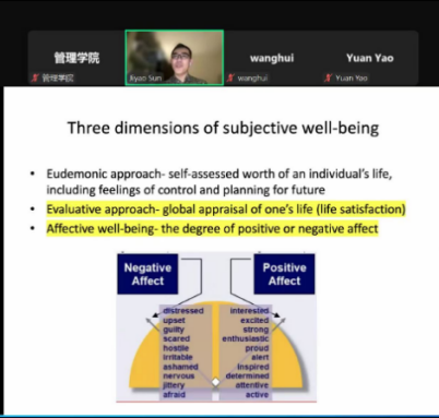1月15日下午,开云kaiyun官方网站“博约论坛”学术交流系列活动在腾讯会议线上顺利开展。本次交流活动邀请到英国曼彻斯特大学的孙基耀博士,为开云kaiyun官方网站师生作“The Diurnal Rhythms of Subjective Wellbeing and Health in Rural China”的讲座。讲座由开云kaiyun官方网站副院长王慧主持,学院赴曼彻斯特大学访学教师姚园副教授及100余名师生参会并交流。