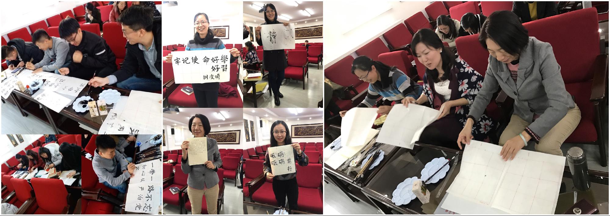 2017年12月13日,学院工会开展书画大赛活动。比赛参与形式多种多样,老师们有的用钢笔抄写《新党章》、入党誓词、习近平总书记讲话原文和十九大报告等内容,有的用毛笔直抒胸臆写下“健康中国”“不忘初心、牢记使命“绿水青山”等十九大报告中相关内容,还有的用绘画的方式用画笔画出学习十九大报告后的心得体会。参加活动的教职工和学生们以最佳的精神面貌和最高水准书写和描绘了自己学习十九大的心得体会,整洁干净的硬笔书法、遒劲有力的软笔书法和精致美丽的绘画让人赏心悦目。老师们也纷纷表示此次活动形式新颖,通过这种形式对十九大和传统文化有了更深的感受和体会。