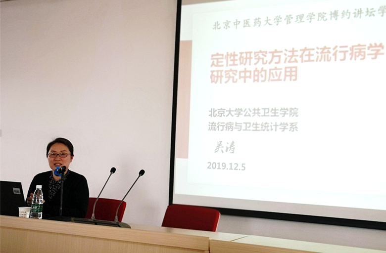 2019年12月5日下午,“博约讲坛”第四讲在开云kaiyun官方网站331环形会议室举行。应我院健康管理与心理教研室的邀请,北京大学公共卫生学院流行病与卫生统计学系副主任——吴涛教授做了“定性研究在流行病学研究中的应用”的报告。本期讲坛由王慧副院长主持。